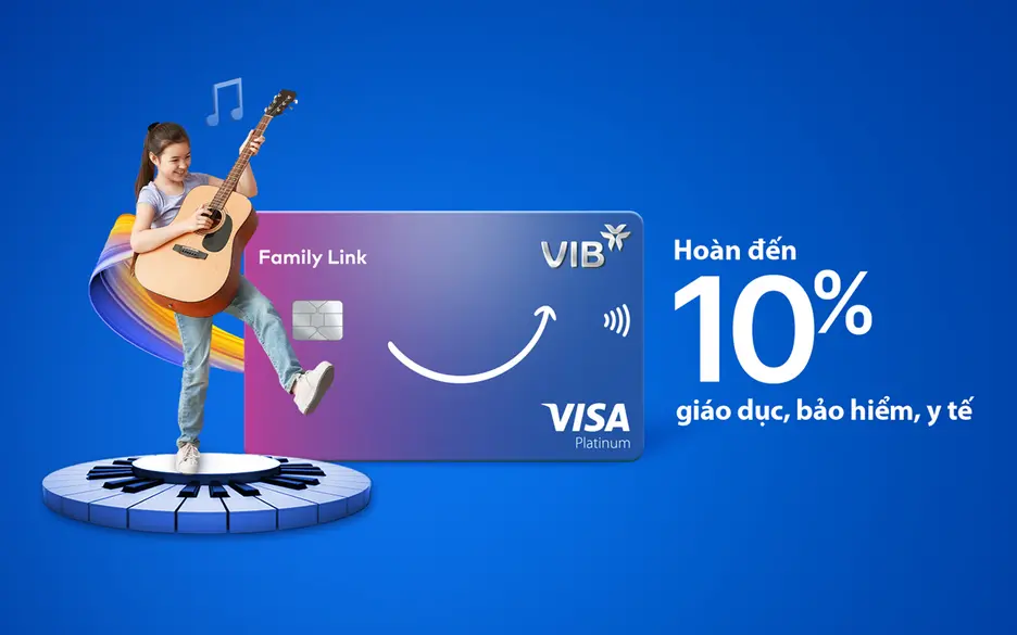 VIB Family Link là một dòng thẻ được thiết kế đặc biệt cho các gia đình, mang lại nhiều ưu đãi liên kết giữa các thẻ chính và thẻ phụ. Với thẻ này, bạn có thể miễn phí 50% phí thường niên cho 2 thẻ liên kết và được hưởng chính sách trả góp 0% lãi suất cho các giao dịch chi tiêu liên quan đến giáo dục. Tuy nhiên, theo thông tin cập nhật, dòng thẻ này hiện đang tạm dừng nhận đăng ký mới.