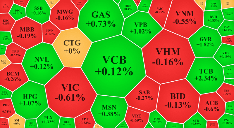 VN-Index hầu như đi ngang vì các mã lớn kém đồng thuận.